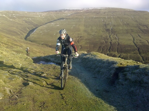 Back on my trusty singlespeed the old legs weren't feeling quite as fresh as the prior day. The fast start quickly burnt the remains of the whiskey away but it wasn't pleasant, thanks go to Mr Hampshire. In no time at all we once again crested the hill to reveal blue skies once again and a lightening quick descent further speeded by large swathes of sheet ice, strathpuffer training anyone?