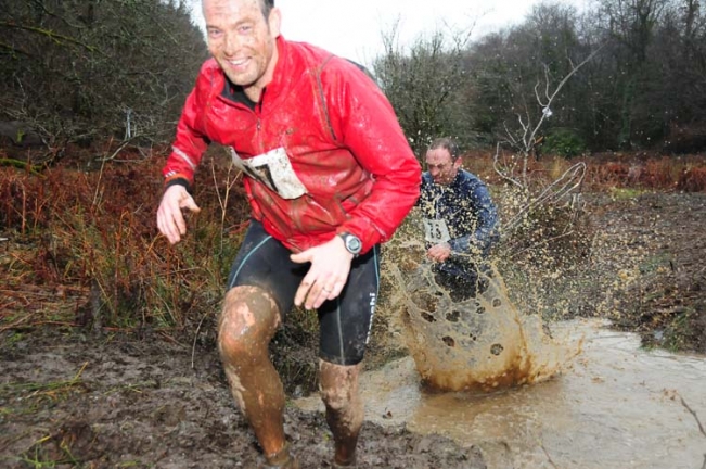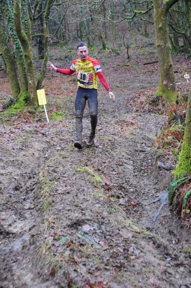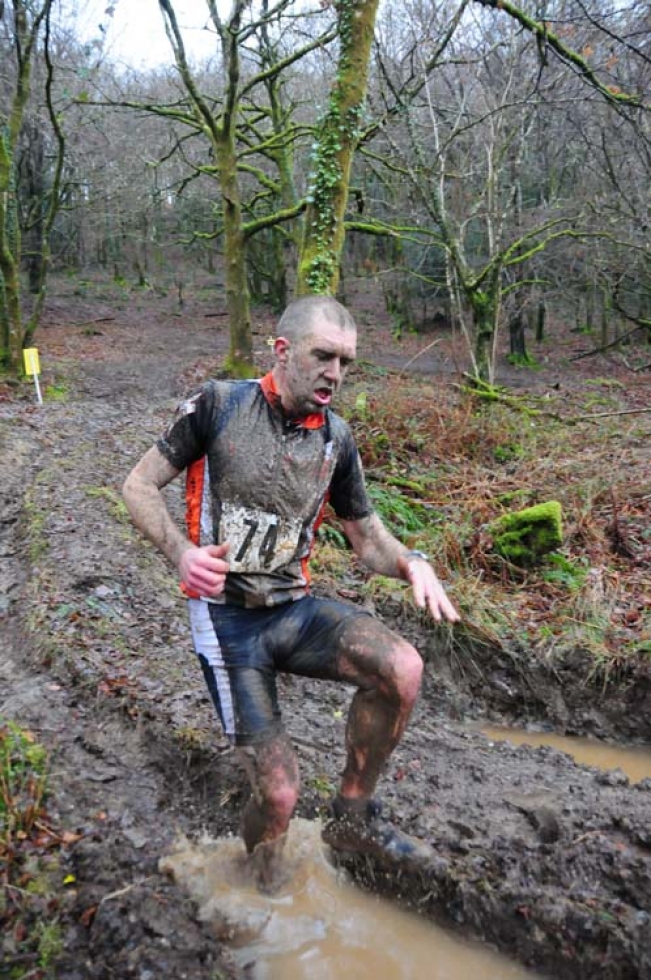 Anyway with the 2 'Long' G.V's finishing last and next to last (yes, I was beaten by my wife Kim) the MTB bit came next. Now this is where I could claw some places back! I had just done one of the truly excellent Fully Sussed skills courses the previous day, so no more tree root terror or steep descent jitters followed by a refusal and crash for me! It was time to put my learning in to practice. The cliff climb went well, then into the woods, a gentle rooty, slippery descent with no trouble and then an uphill muddy bit. Stomping on the cranks at this point resulted in a metallic nasty noise, a momentary 500 RPM from the cranks then that awful toppling feeling followed by the splat and full face plant. I'll never understand why ladies actually pay money for mudpack treatment.
